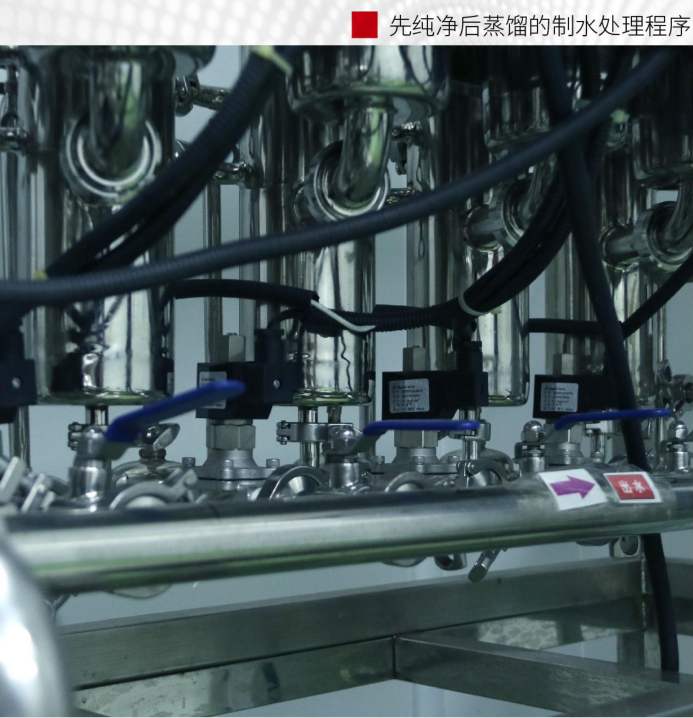首先采用化妆品行业极少使用的红外线三集反渗透工艺制造纯净水,然后采用医用级注射蒸馏水工艺,将纯水升级为医用蒸馏水,确保产品中功效成分和水的安全性、稳定性、卫生性。